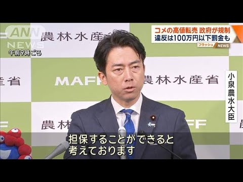 【コメ】すべてのコメ転売禁止へ、違反は罰則も 小泉氏「高騰望ましくない」……国民生活安定緊急措置法に基づく措置(動画あり)