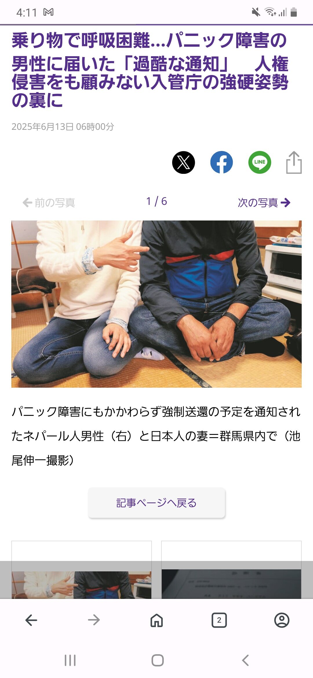 乗り物で呼吸困難…パニック障害の男性に届いた「過酷な通知」 人権侵害をも顧みない入管庁の強硬姿勢の裏に月のある日。群馬県のネパール人男性(49)は、届いた通知を目にして恐怖した。