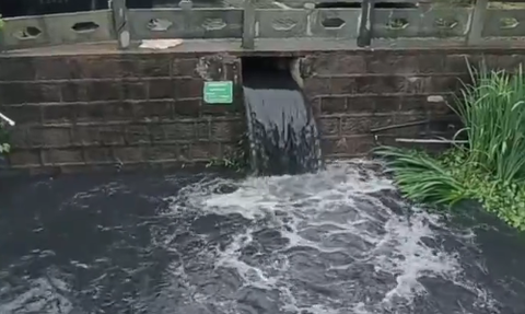 6月15日、浙江省寧波市鄞州区東渝コミュニティ派出所の隣の川に汚水が直接排出され、川全体が悪臭で満たされている様子を、あるブロガーが写真に撮影した。