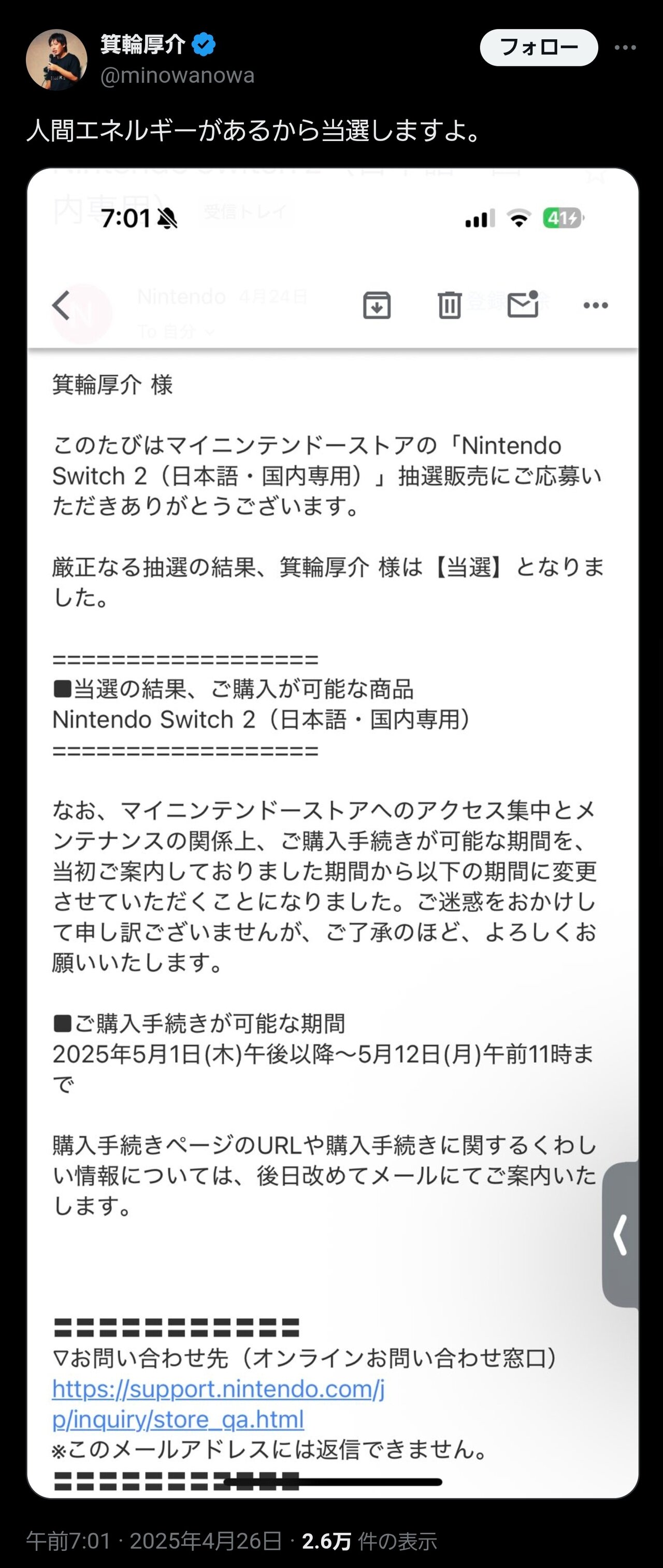 2025年6月18日 12:24幻冬舎の編集者の箕輪厚介氏が18日、ユーチューブで「中川翔子さんにSwitch2を譲渡したのは私です」と明かし、謝罪した。