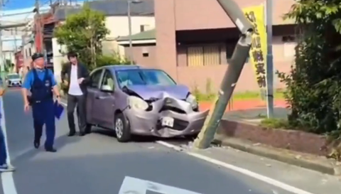 【動画】中国人、免許入手した翌日レンタカーで電柱にドーンして電柱をへし折る