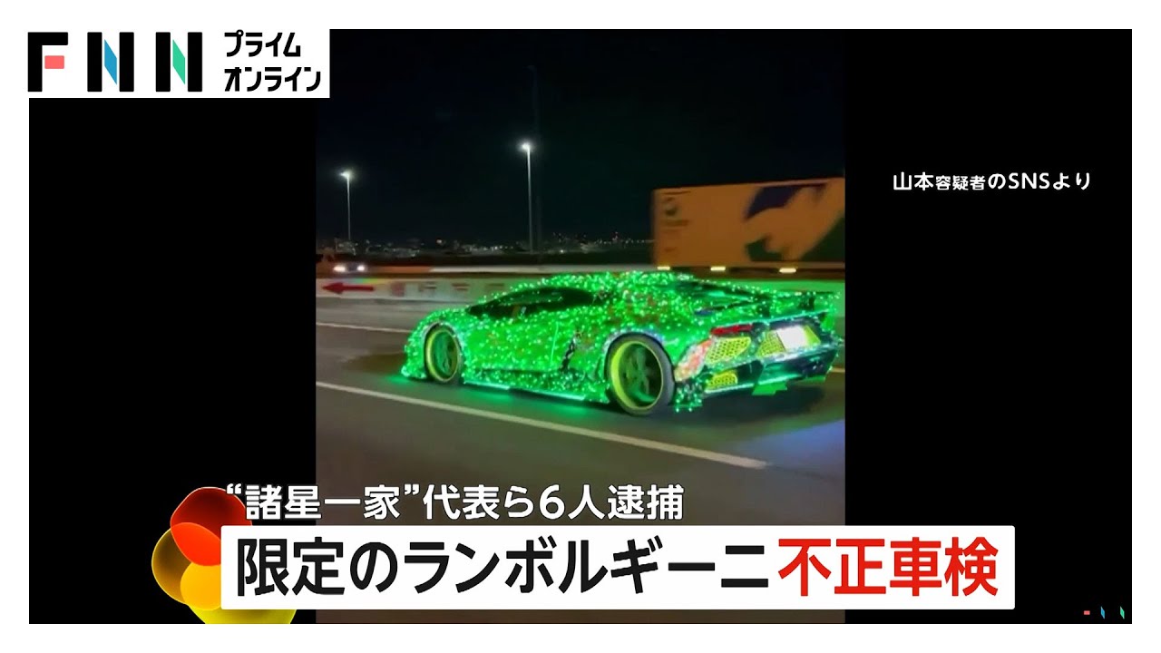車のカスタムショップ社長、山本伸一容疑者ら6人が不正車検をした疑いで逮捕された。世界に100台しかない緑の「ランボルギーニ」に派手な改造を施す山本容疑者とは一体、何者なのか?