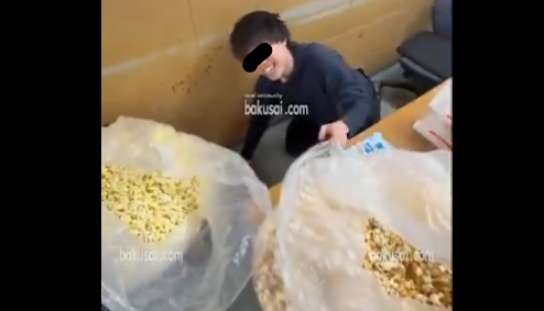 拡散された動画には、若い男性がふざけながら、ポップコーンが大量に入った袋に顔を入れる様子が映っている。