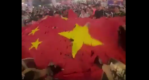 抗议者现场撕毁了一面巨幅中国国旗,以及一面印有中国高层政治人物王沪宁头像的旗帜。 https://t.co/uAaRtkJV61 pic.twitter.com/migtvMdu8e— 李老师不是你老师 (@whyyoutouzhele) July 5, 2025