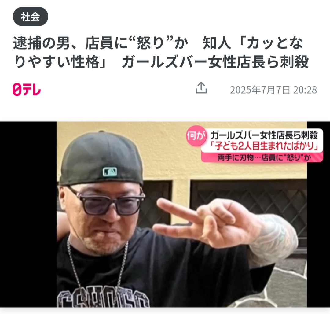 関係者によりますと、男は2人を刺した後「小馬鹿にされたからやっちゃった。ごめん」と店の関係者に話していた(略)