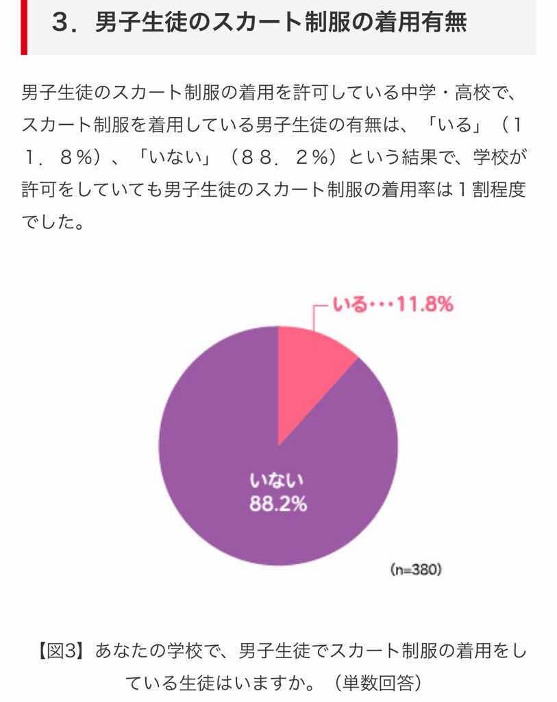 実際にスカートを着用している男子生徒は1割程度と低い着用率です。