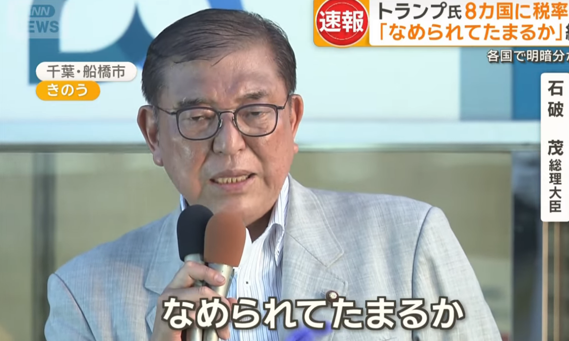 石破茂首相は9日、千葉県船橋市で街頭演説し、トランプ米政権との関税交渉について「国益をかけた戦いだ。なめられてたまるか。たとえ同盟国であっても正々堂々言わなければならない。守るべきものは守る」と強調した。日本は米国で最大の投資をして、最大の雇用を生んでいると重ねて指摘。(略)