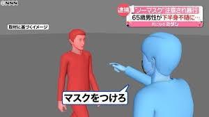 無職男性(65)から「マスクをしろよ」と注意されたことに腹を立て、男性の首を絞めながら投げ飛ばし、重傷を負わせた疑い。