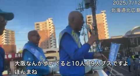 日本保守党の百田代表が北海道北広島での街宣で、大阪を歩いていると10人中9人ブス、外出するのもだんだん嫌になってくると発言。