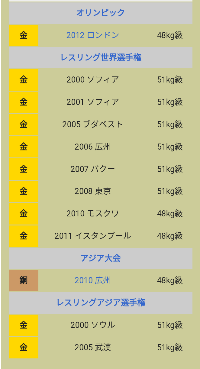 レスリングは金メダリストが多すぎて、すまんが記憶が