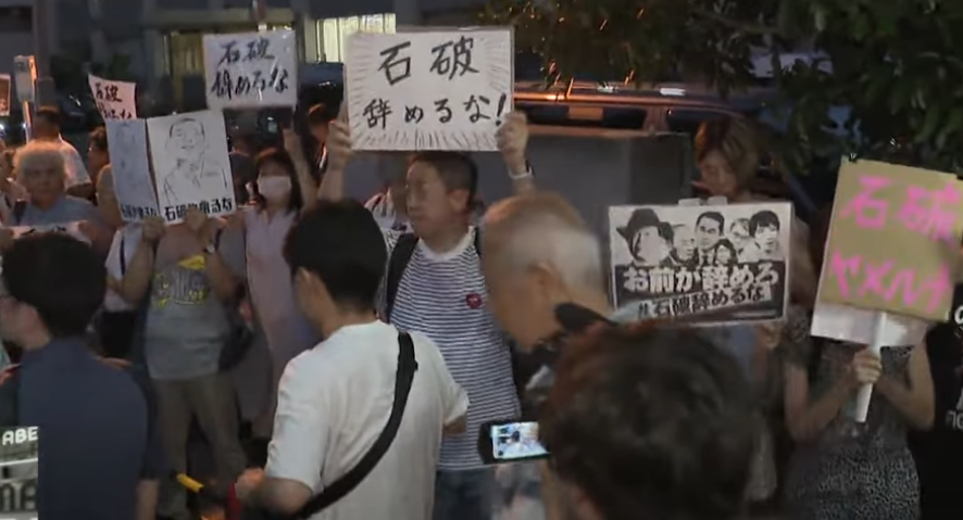 楪キャスターは「先ほど午後7時から本格的に石破さんに対して『辞めないでほしい』などと訴えるデモが始まった。今も私の後ろにはプラカードだったり、皆さん思い思いの言葉を掲げて声をあげている。