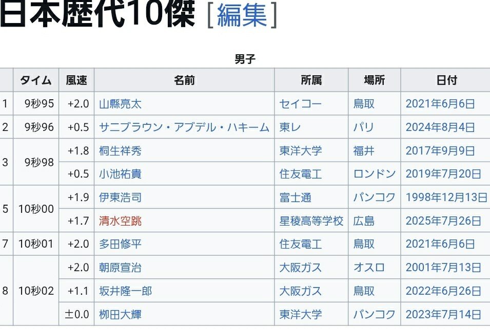 その3組目に登場した清水は抜群のスタートから他を突き放すと、ぐんぐん加速した。独走態勢でゴール。速報タイムは10秒00が表示され、会場は一気にどよめき (略)