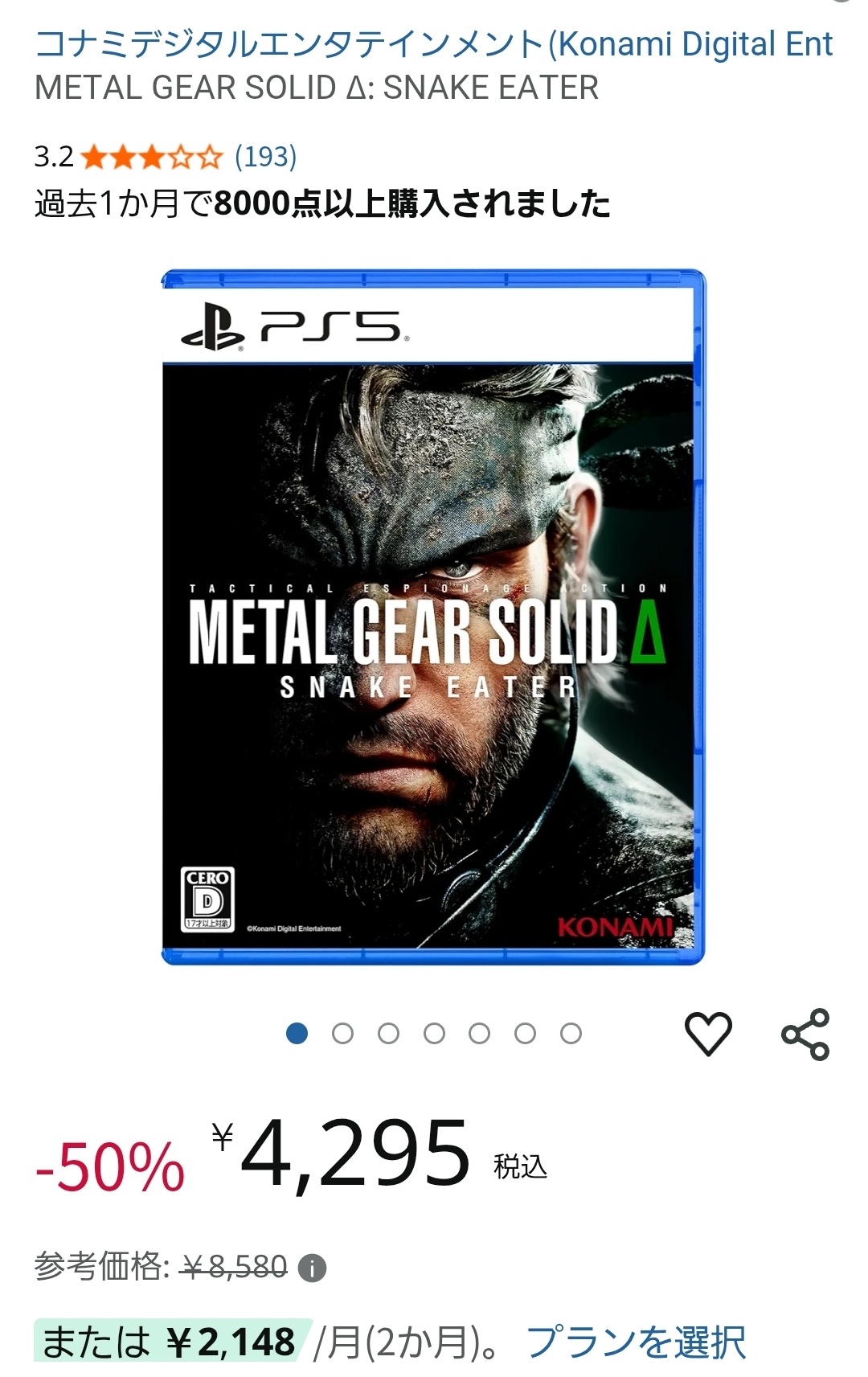 引用元: ・【悲報】『METAL GEAR SOLID Δ: SNAKE EATER』、発売2週間で50%オフwwwwwww [977790669]