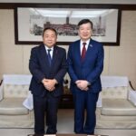 笑顔の石平参院議員(左)と李逸洋駐日代表=9月10日、東京都(駐日代表処HPから)