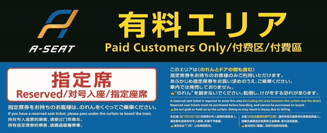 対象車両にはリクライニングシートを設置しており、有料エリアは指定席券の購入者のみが立ち入り可能となっています。