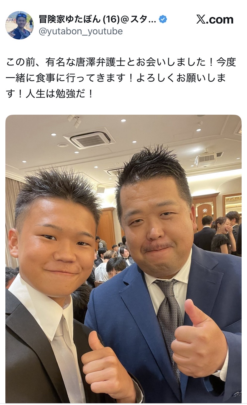【画像】ゆたぼん、唐澤弁護士とツーショットww