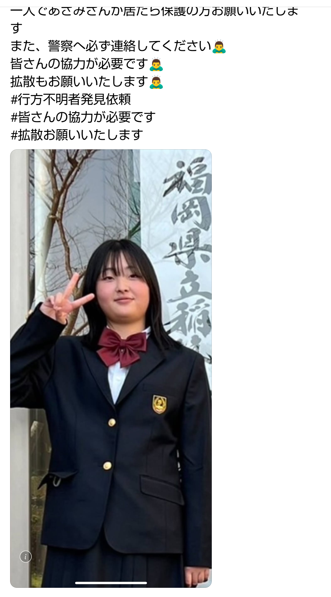 The post 福岡で16歳JKが行方不明に first appeared on TweeterBreakingNews-ツイッ速!.