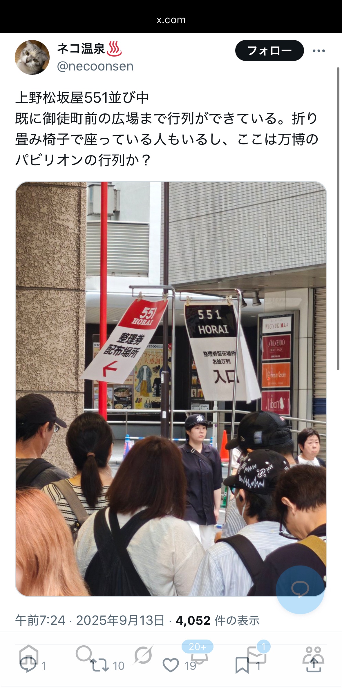 The post 【悲報】東京人さん、「551の蓬莱」に大行列を作ってしまうwww整理券を配る事態に first appeared on TweeterBreakingNews-ツイッ速!.