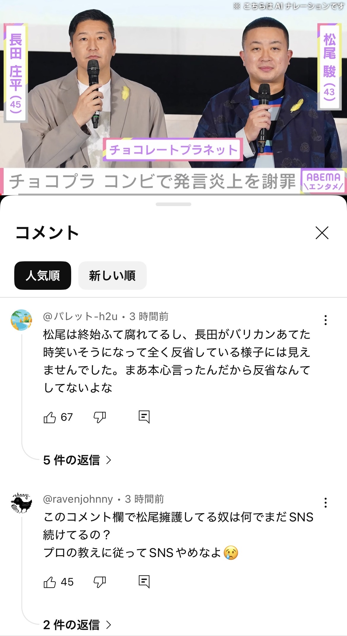 引用元: ・【悲報】チョコプラの謝罪動画、悪手くさい雰囲気が漂い始める