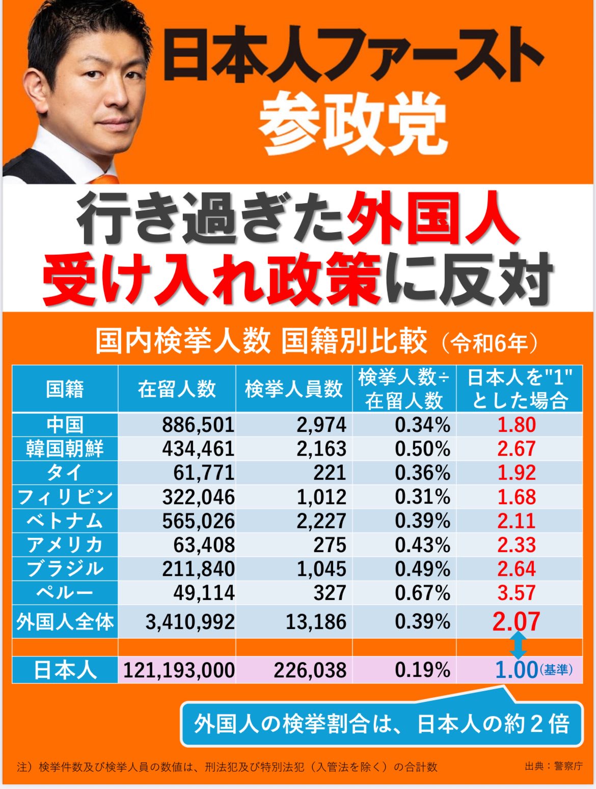 引用元: ・参政党「外国人の犯罪率はこんなに高い」コミュニティノート「分子と分母が別のデータで草」