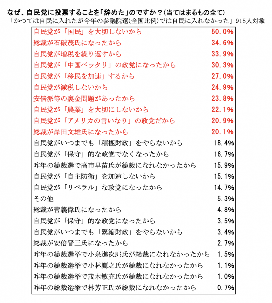 調査対象は「自民党支持・経験者」である2000人で、具体的には、政権末期から今日に至る6年間に実施された(衆参双方の)「国政選挙」で、一度でも「自民党」に投票した方々を対象としました。