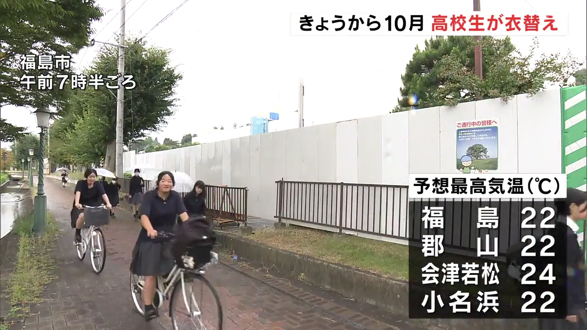 10月に入り、福島県内では衣替えをして久しぶりに冬服で登校する高校生たちの姿が見られました。