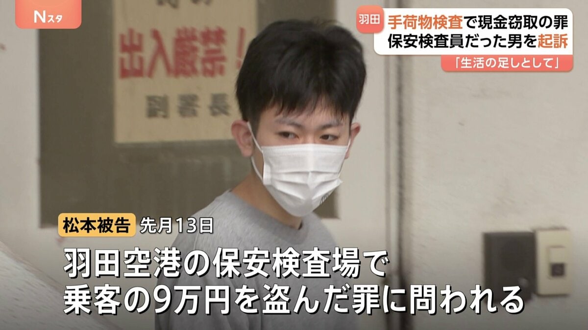 東京地検によりますと、松本被告は先月13日、羽田空港の保安検査場で、乗客の男性が手荷物検査のためにトレーに置いた現金9万円を盗んだ罪に問われています。