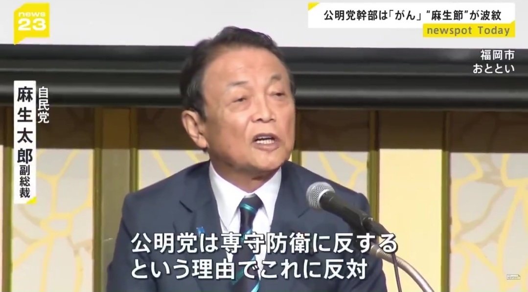 The post 麻生「軍拡を進めていく時に一番反対してた癌が公明党。その裏にいる創価学会」 →これ恨んでいたww first appeared on Tweeter BreakingNews-ツイッ速!.