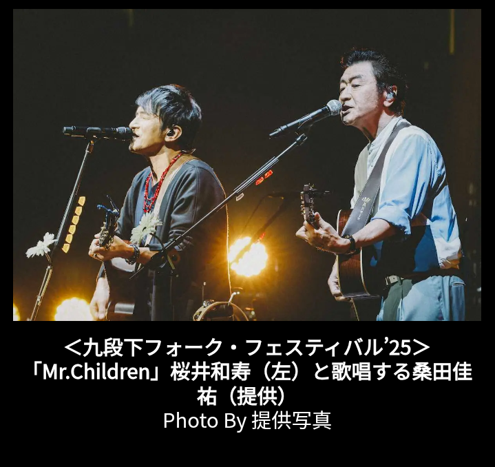 サザンオールスターズの桑田佳祐(69)が12日、東京・北の丸公園の日本武道館で音楽イベント「九段下フォーク・フェスティバル’25」を行った。桑田にとってはサザンで開催した2015年以来、10年ぶりの武道館公演。