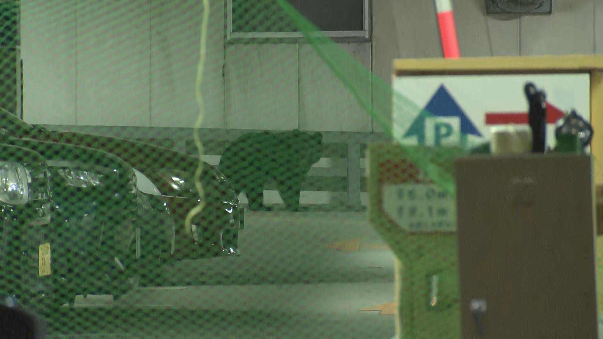 警察と市が駐車場の出入り口を網で塞いでいて、クマは午後10時現在も駐車場内に居座っています。