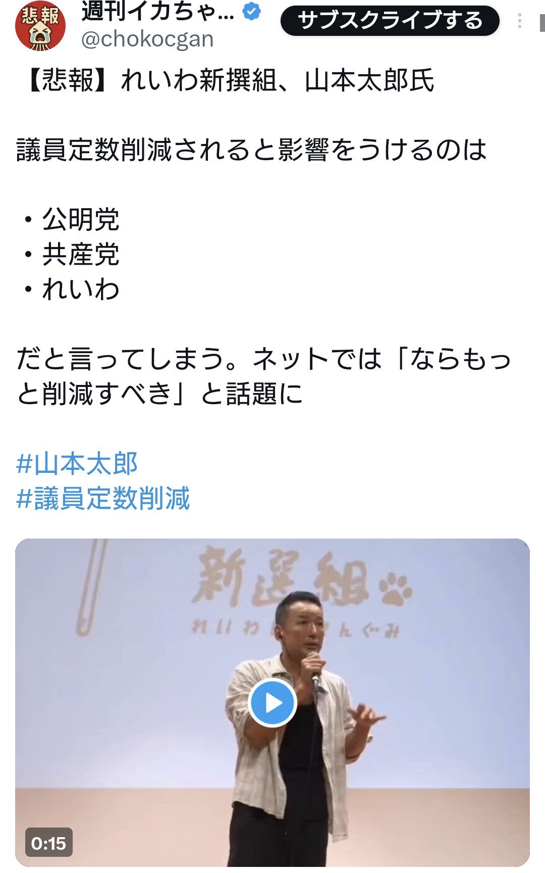 The post 山本太郎氏「議員定数削減されると影響をうけるのは公明党、共産党、れいわ」 first appeared on Tweeter BreakingNews-ツイッ速!.