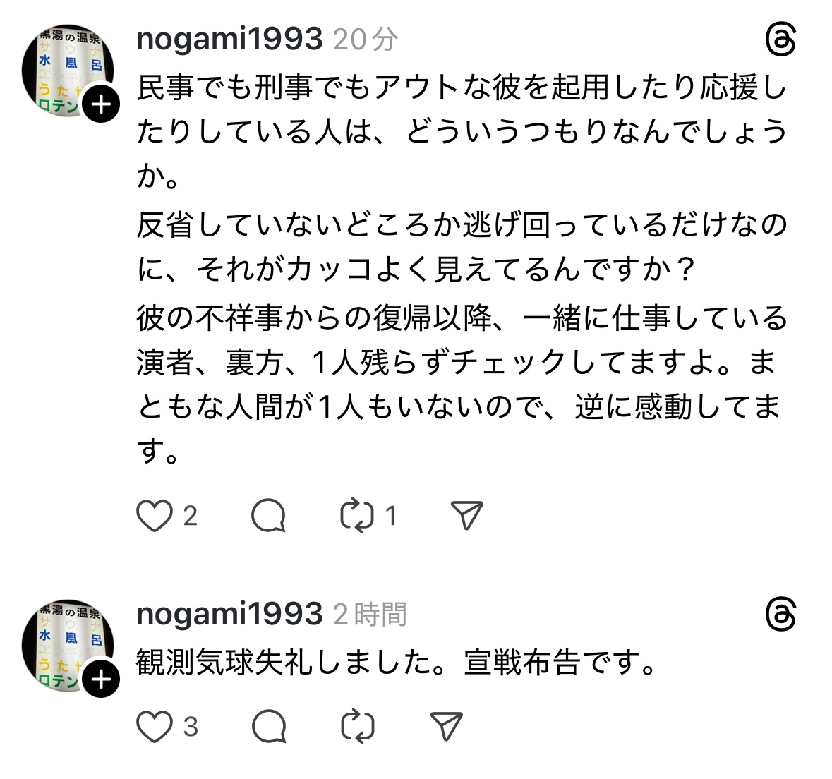 引用元: ・【速報】令和ロマンくるまに妻を寝取られたラジオプロデューサー、くるまに宣戦布告
