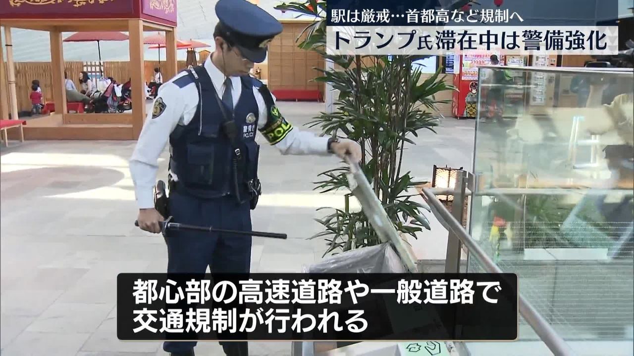 トランプ大統領の滞在期間中、警視庁は最大で1万8000人態勢で警備にあたるとしていて、都内の主要な駅などでも警備を強化するということです。