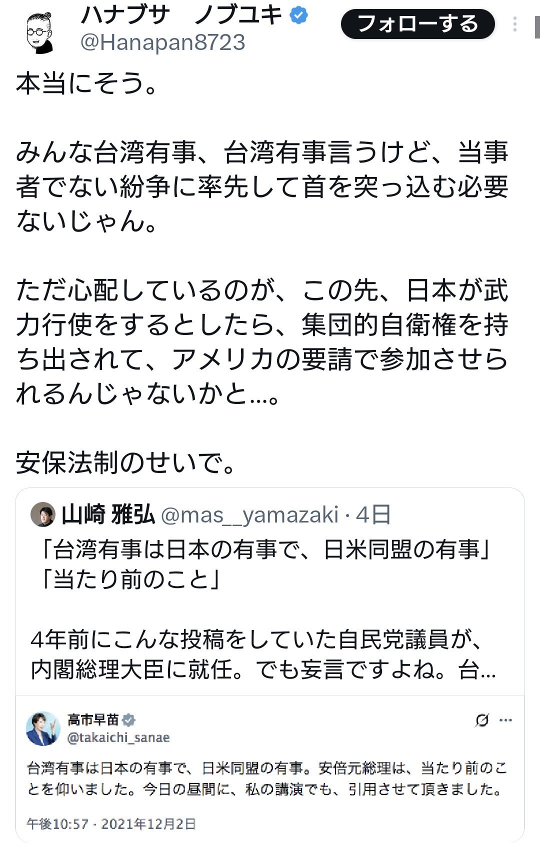 パさん「みんな台湾有事、台湾有事言うけど、当事者でない紛争に率先して首を突っ込む必要ないじゃん」