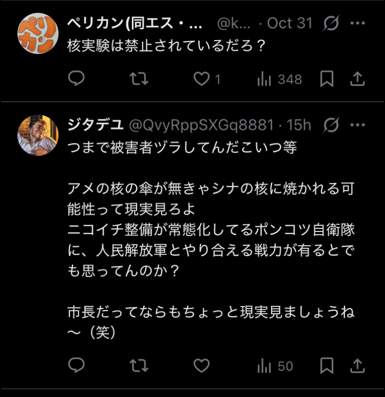 高市応援団「高市さんの支持率を下げたいのか?」「いつまで長崎は被害者ヅラしてんだ」「中国や北朝鮮にも言えよ!」(言ってる)