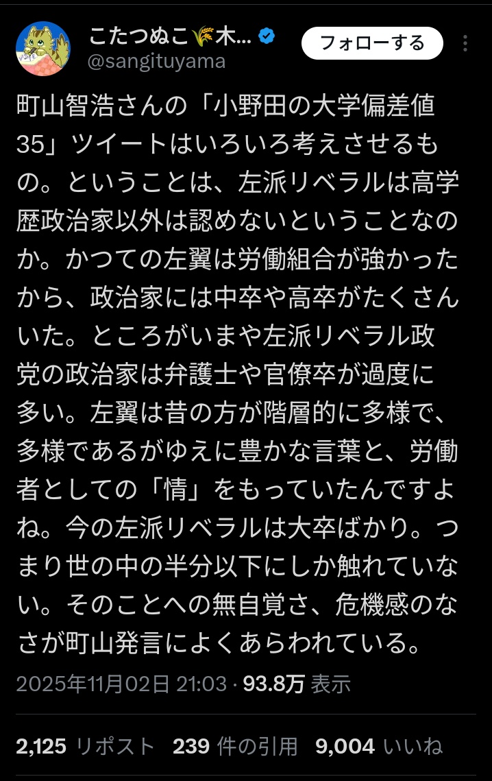 引用元: ・町山智浩さん「(小野田紀美)偏差値35で学術会議担当?」→炎上🔥wwwwwwwwwwww [271912485]