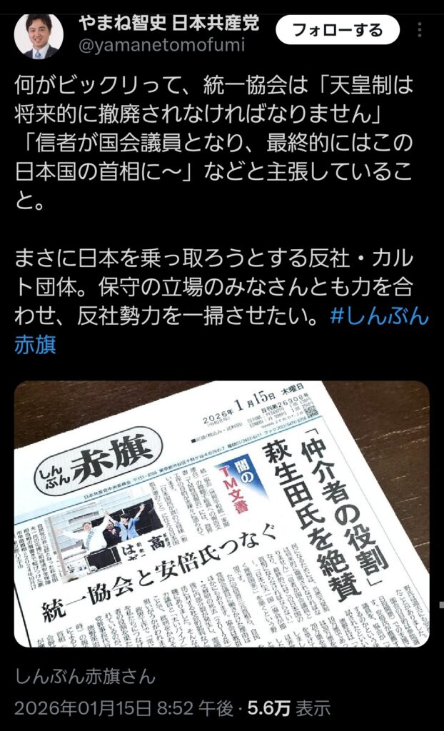 統一教会「天皇制を廃止し、統一教会信者を総理大臣にしろ!!」🤪