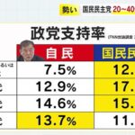 【石破政権が迷走する中、勢いを増す国民民主党】地方選でも快進撃を続け、現役世代を中心に支持を拡大・・国民民主党の支持率が20代、30代、そしてついに40代でもトップに、50代についても差がなくなってきている