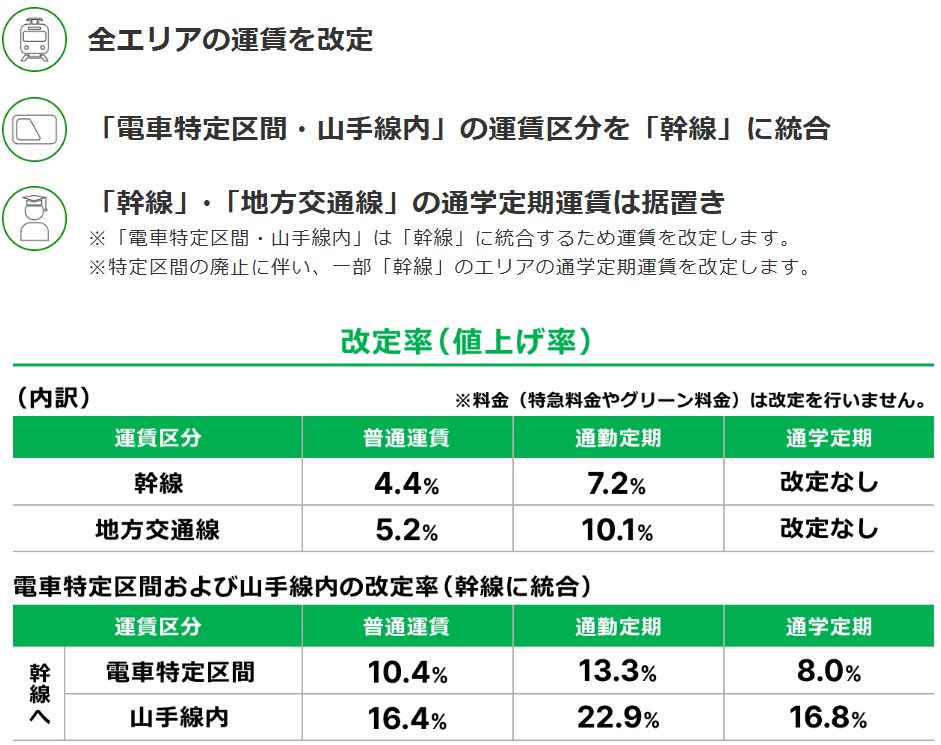 【JR東日本】運賃改定のお知らせ 山手線内通勤定期値上げ率22.9% 2026年3月14日~
