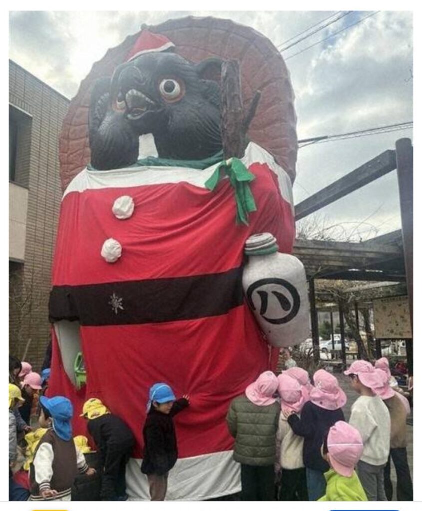 【ほっこりNEWS】高さ5メートル 巨大タヌキがサンタクロースに変身 滋賀・信楽駅... -