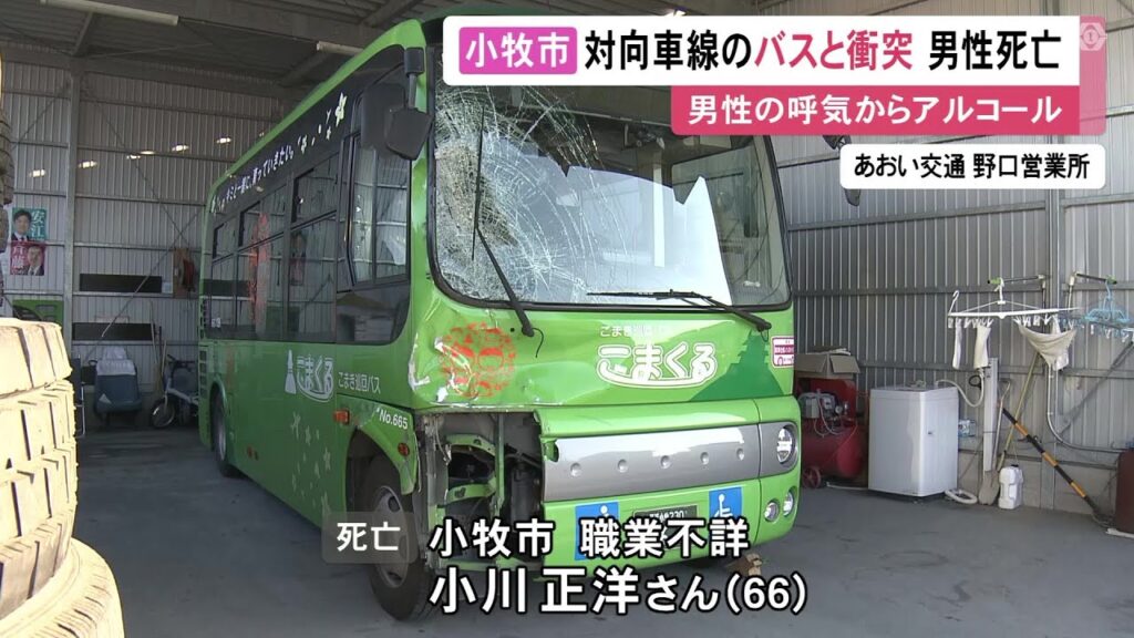 【酒】バスと衝突し意識不明だった軽乗用車の66歳男性が死亡 呼気からアルコール検出…酒に酔った状態で運転か (動画あり)