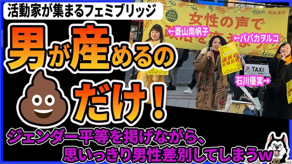 【X】「男が産めるのうんこだけ」フェミブリッジ(国際女性デー)で男性差別ラップ... -