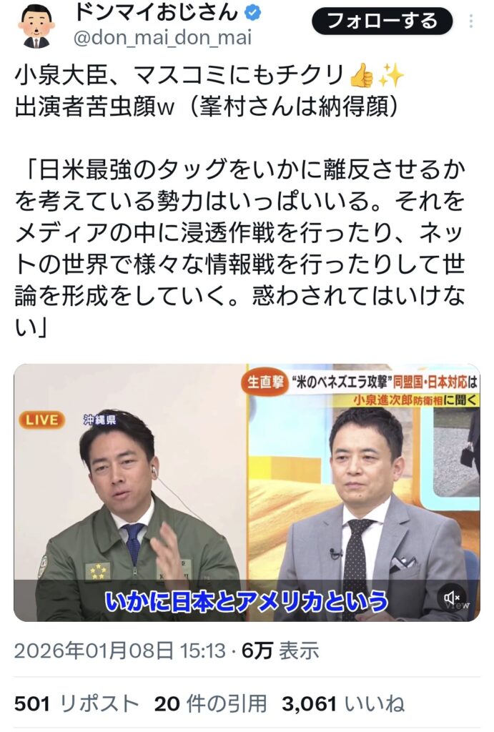 小泉防衛大臣「日米のタッグを離反させようとする勢力はいっぱいいる。惑わされて... -