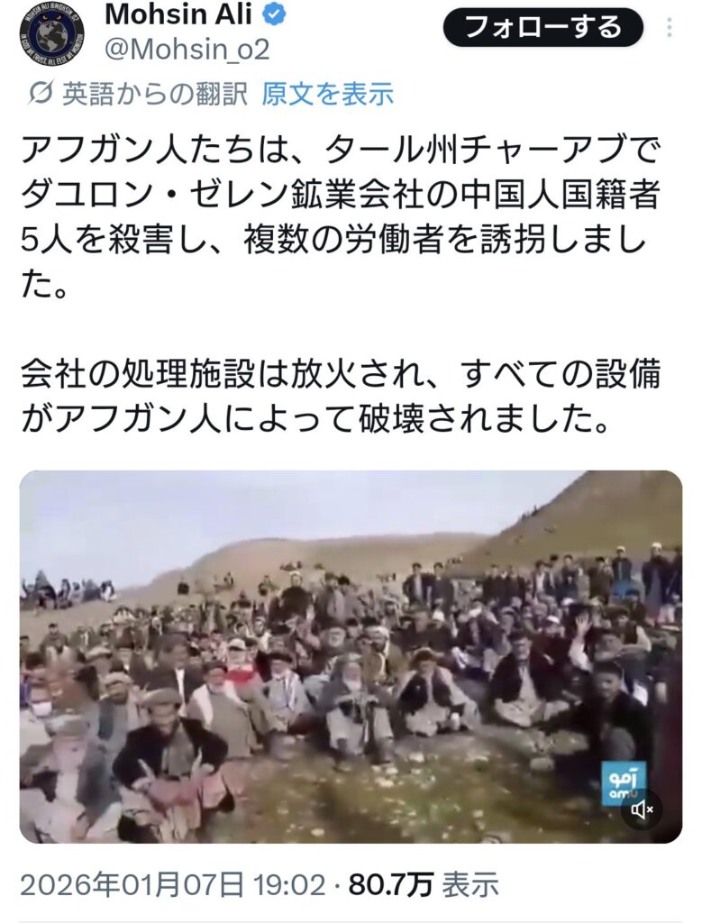 アフガニスタンにて現地の人々が中国のレアアース採掘精錬施設を破壊、中国人5名... -