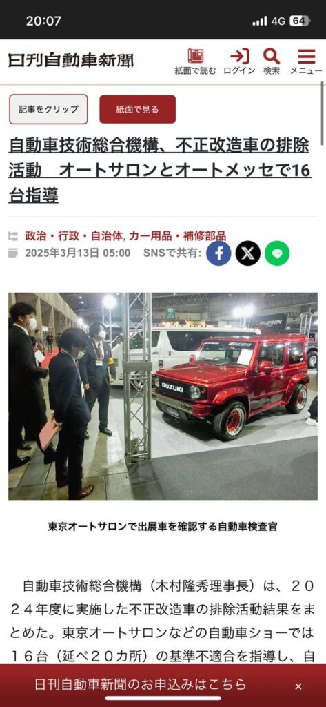 【東京オートサロン】ナルテックが乗り込み出展車両に車検実施、対策で今年は公道走行不可の看板多数に