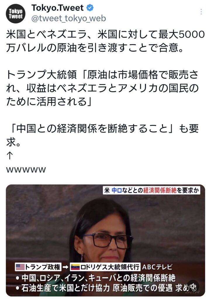 【悲報】ベネズエラの石油売却利益、トランプが管理。米国とかじゃなくトランプ個... -