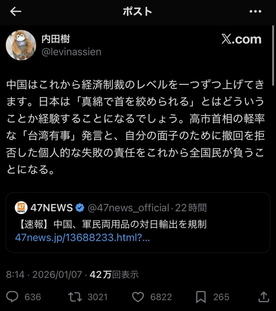 X識者「中国は経済制裁レベルを一つずつ上げていき日本は『真綿で絞められる』を経験することになる」