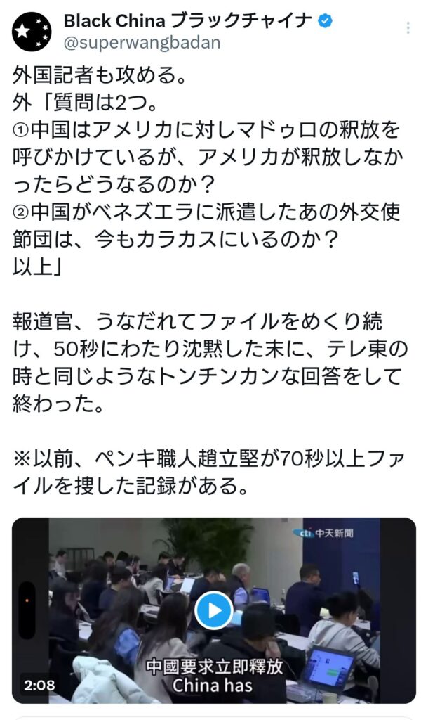 記者「中国がベネズエラに派遣したあの外交使節団は今も現地にいるのですか?」→中... -
