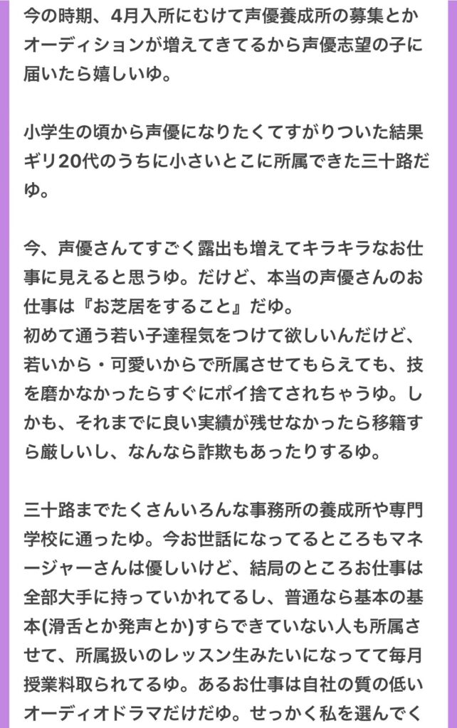 廃業を決意した三十路の女性声優さんが声優志望者達に送った切実なメッセージが話... -