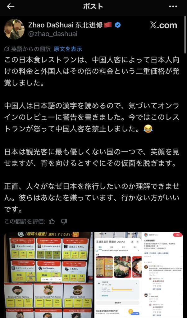 中国人お断りラーメン店『王道家直系我道家』 中国人に対するボッタクリがトラブル... -